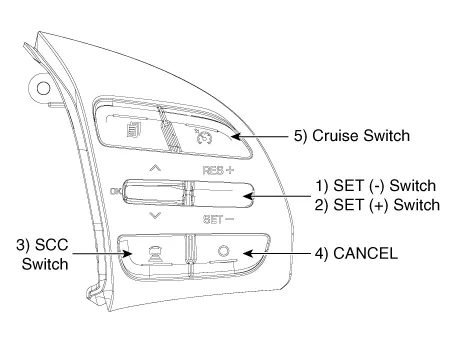Cruise Control Switch Input the set speed and distance to the SCC ECU.