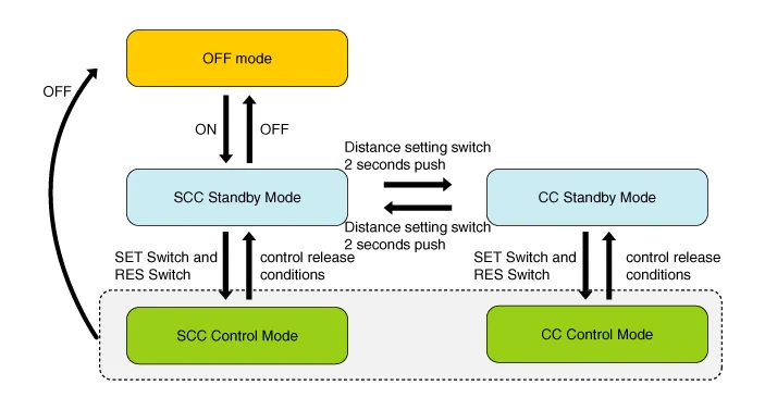 | 4. | Acceleration control : The vehicle accelerates to the selected speed if a vehicle ahead is not detected. |