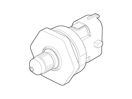 Rail Pressure Sensor (RPS) is installed on the delivery pipe and measures the instantaneous fuel pressure in the delivery pipe. The sensing element (Semiconductor element) built in the sensor converts the pressure to voltage signal. By using this signal, the ECM can control correct injection amount and timing and adjusts the fuel pressure with the fuel pressure regulator valve if the target pressure and the actual pressure calculated by the RPS output signal are different.
