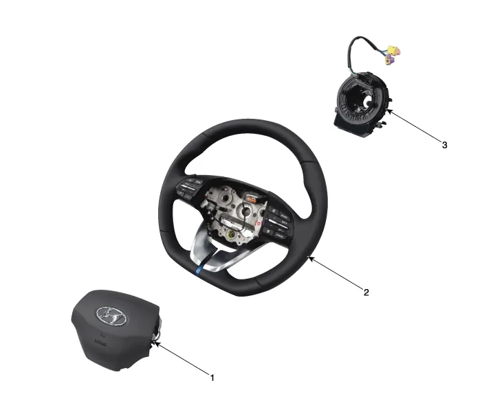 | 1. Driver Air Bag (DAB) 2. Steering Wheel | 3. Clock Spring |