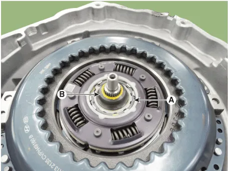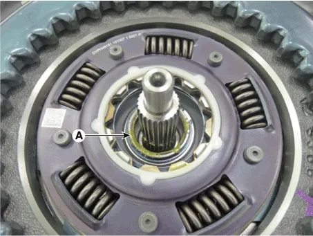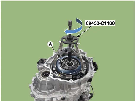 | 1. | Install the SST (No.:09430-2A240) on the support bearing with in the dual clutch assembly (A).