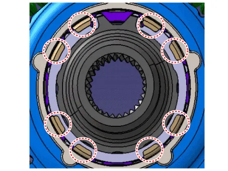 Components1. Clutch housing2. Engagement bearing 2 (Even)3. Engagement bearing 1 (Odd)4. Engagement bearing sleeve5. Engagement frok 1 (Odd)6. Engagement frok 2 (Even)