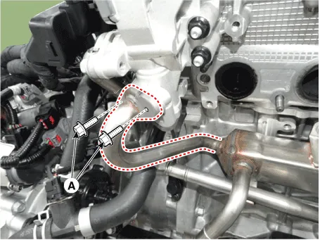 | 7. | Remove the EGR cooler pipe B bolts (A).