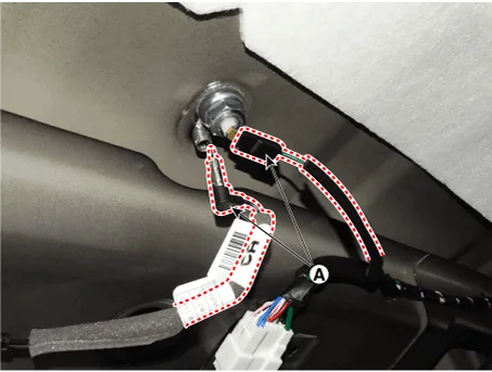 | 3. | Disconnect the roof antenna cable and connectors (A).