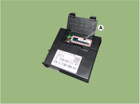 | 6. | Disconnect the ecall unit back battery (BUB) service cover (A).
