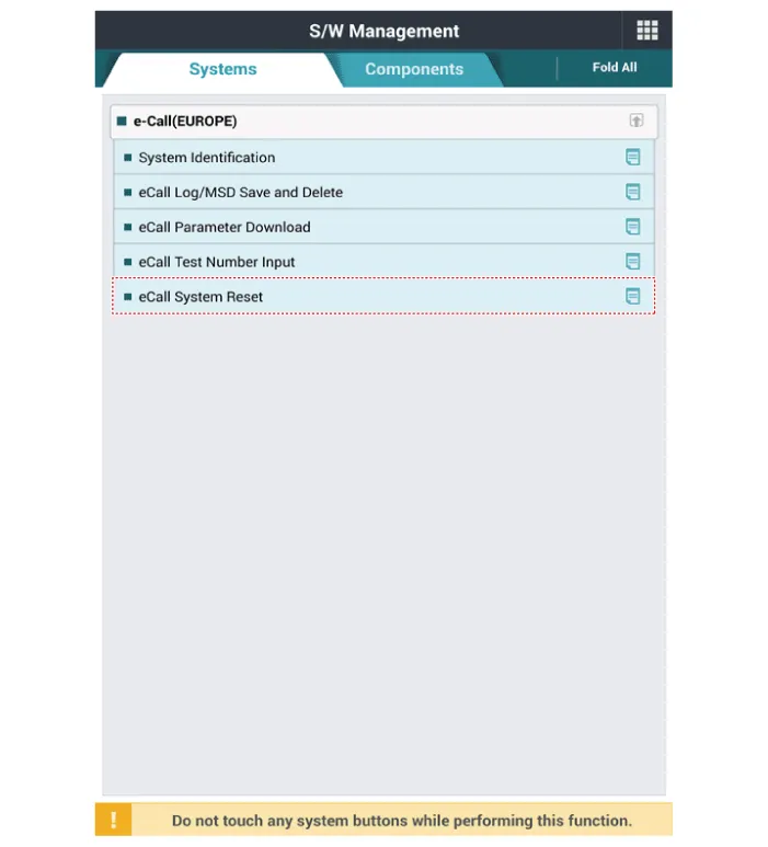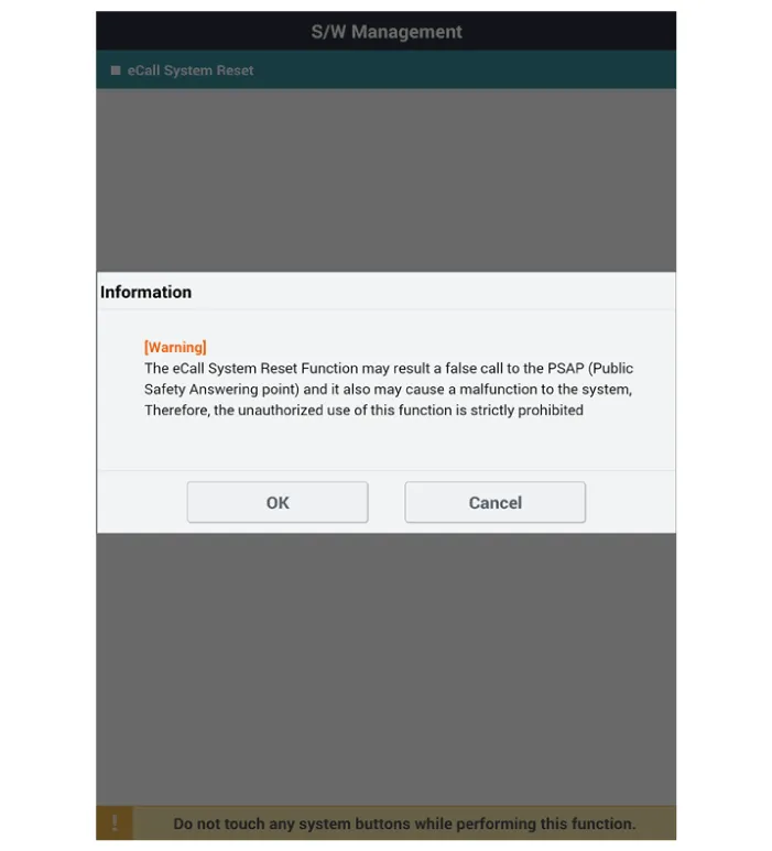 | 6. | Follow the screen instructions to perform the "eCall System Reset".
