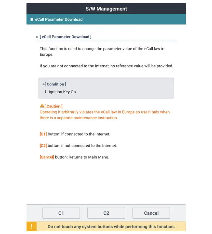| 6. | Follow the screen instructions to perform the "eCall Parameter Download".