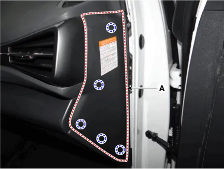 | 3. | Remove the crash pad side cover [LH] (A) by using a remover.