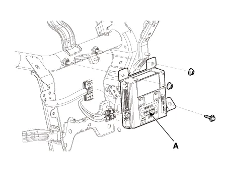 | 11. | Loosen the mounting bolts and nuts and remove the e-call unit (A) towards the console. [LHD]
