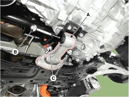 | 11. | Remove the transaxle support bracket mounting bolts (A).