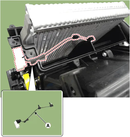 | 4. | Pull out the evaporator temperature sensor (A) from the evaporator core.
