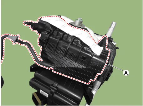 | 3. | Remove the evaporator core cover (A) after loosening the mounting screws.