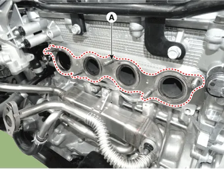 | 8. | Remove the EGR cooler pipe A bolts (A).