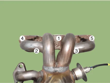 Components1. Exhaust manifold assembly2. Exhaust manifold gasket3. Exhaust manifold stay