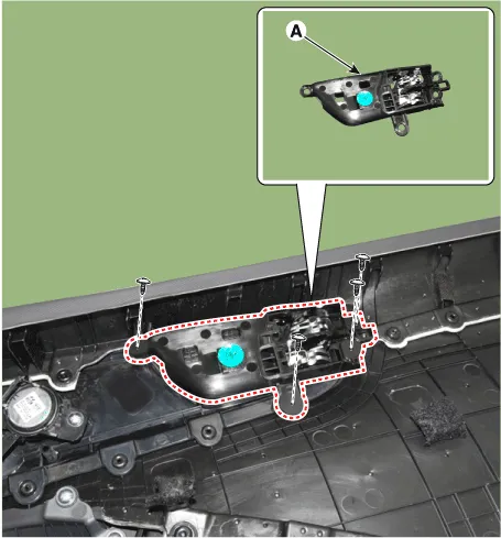 | 2. | After loosening the mounting screws, remove the front door inside handle (A).