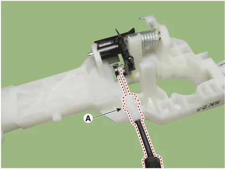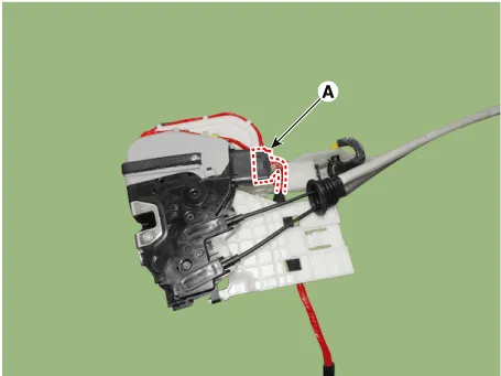 | 5. | To remove the front door outside handle base connector (A), widen both sides of the wiring fastener and then push back the front door outside handle base connector.