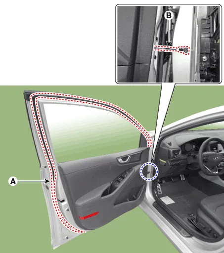 Replacement1.Remove the front door trim.(Refer to Front Door - "Front Door Trim")2.Remove the front door belt inside weatherstrip (A).3.To install, reverse the removal procedure.
