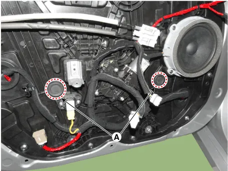 | 3. | Separate the mounting plug hole (A) from the front door module.