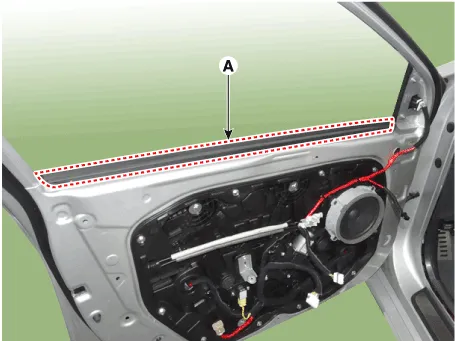 | 2. | Remove the front door belt inside weatherstrip (A).