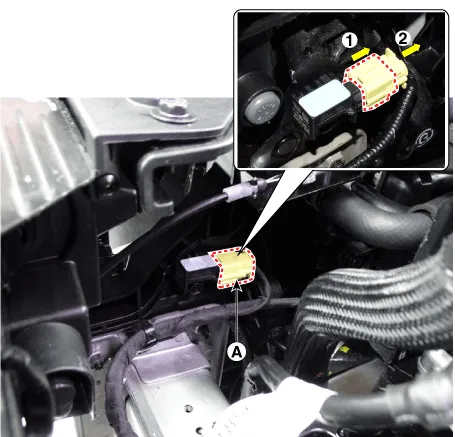 | 2. | Disconnect the front impact sensor connector (A).