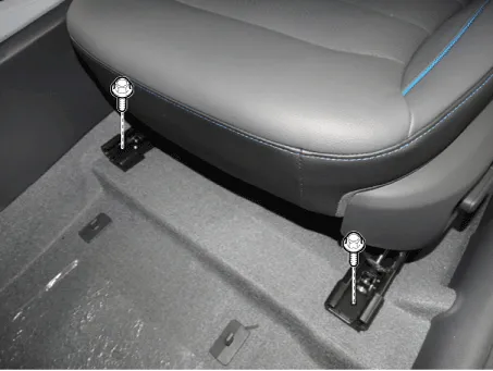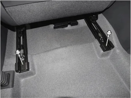 | 1. | Open the cover and loosen the front seat mounting bolts. [Front]