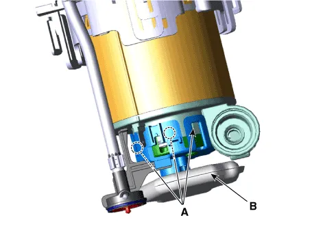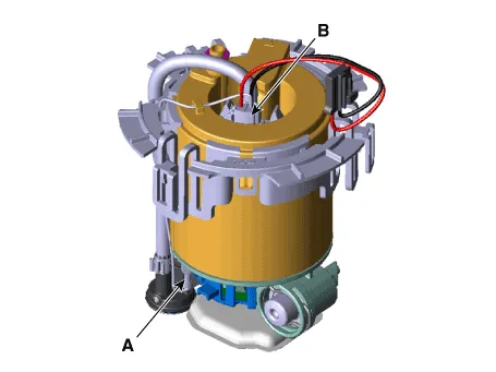 Removal1.Remove the fuel pump.(Refer to Fuel Delivery System - "Fuel Pump") 2.Disconnect the fuel pump motor connector (A) and fuel sender connector (B).