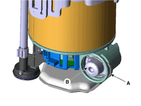 | 9. | Disconnect the fuel pressure regulator (B) after removing the fixing pin (A).