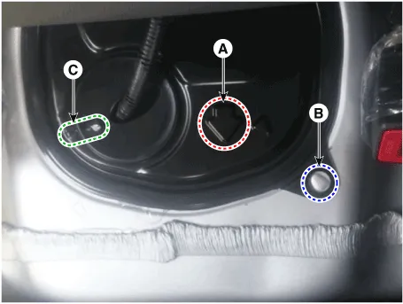 | 3. | Remove the fuel pump service cover (A).