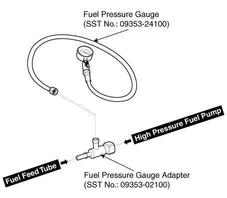 | 3. | Inspect fuel leakage on connections among the fuel feed tube, the high pressure fuel pump, and the SST components with IG ON. |