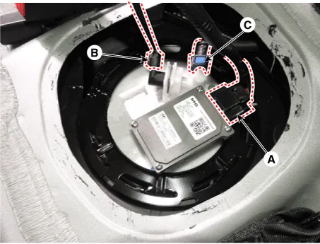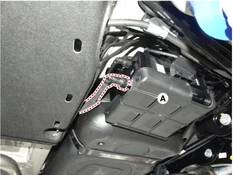 | 4. | Disconnect the fuel pump control module connector (A). |