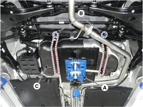 | 13. | Remove the fuel tank (C) from the vehicle.