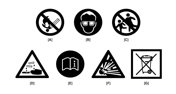 | A. Keep lighted cigarettes and all other flames or sparks away from the battery. |
