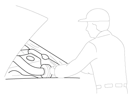 | 1. | Be sure to disconnect the battery cable from the negative (-) terminal of the battery. |