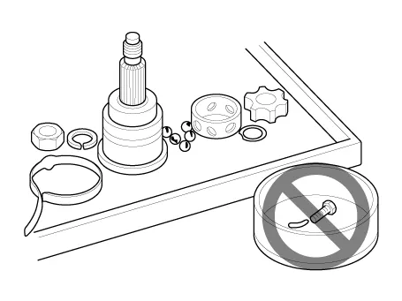 | 2) | Arrangement of parts All disassembled parts should be carefully arranged for effective reassembly. Be sure to separate and correctly identify the parts to be replaced from those that will be used again.