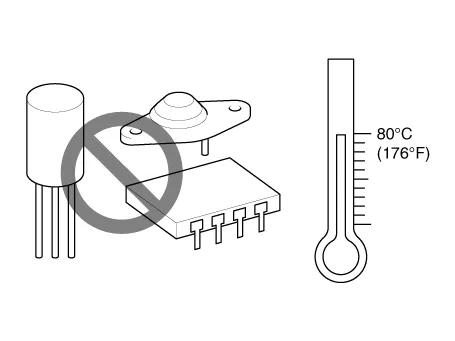| 6. | The electronic parts used in the computer, relays, etc. are readily damaged by heat. If there is a need for service operations that may cause the temperature to exceed 80°C (176°F), remove the electronic parts before hand.