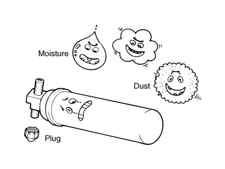 | 2. | Seal the open fittings of components with a cap or plug immediately to prevent intrusion of moisture or dust. |