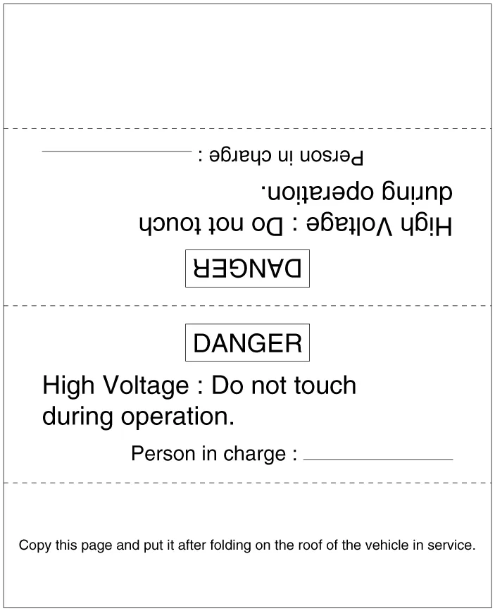 | Inform of danger of high voltage by putting the "high voltage caution" on the vehicle as image below. |