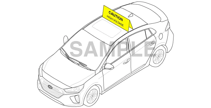 | Inform of danger of high voltage by putting the "high voltage caution" on the vehicle as image below. |