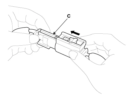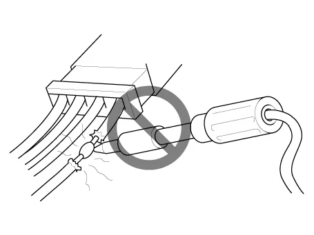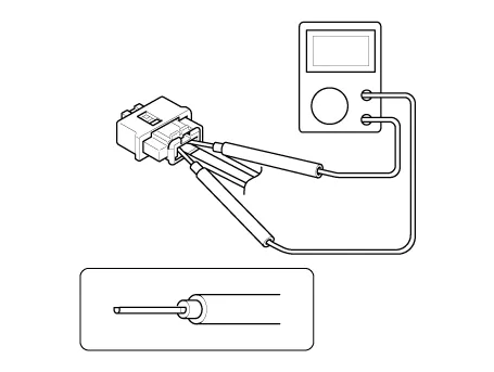 | • | When using electrical test equipment, insert the probe of the tester into the wire side of the connector. Do not insert the probe of the tester into the terminal side of the connector, and do not tamper with the connector.