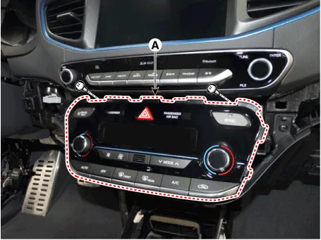 | 3. | After loosening the mounting screws, remove the A/C & heater controller unit (A).