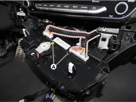 | 4. | Disconnect the A/C & heater controller unit (A)..