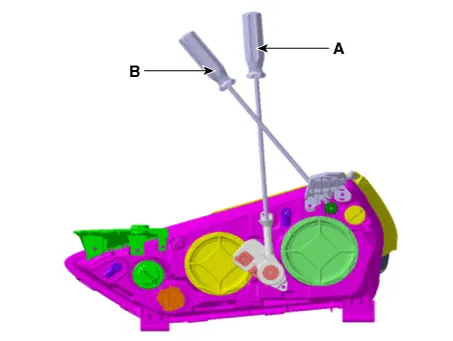 | 4. | Remove the head lamp (B) mounting bolts.