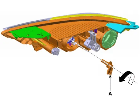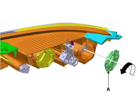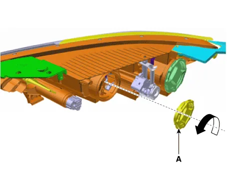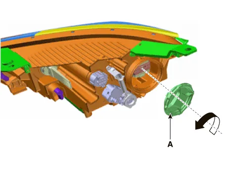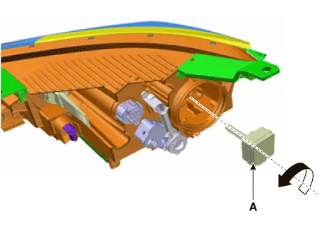 | 6. | Remove the high bulb (A) from the head lamp assembly after turning in the counter clock-wise direction.