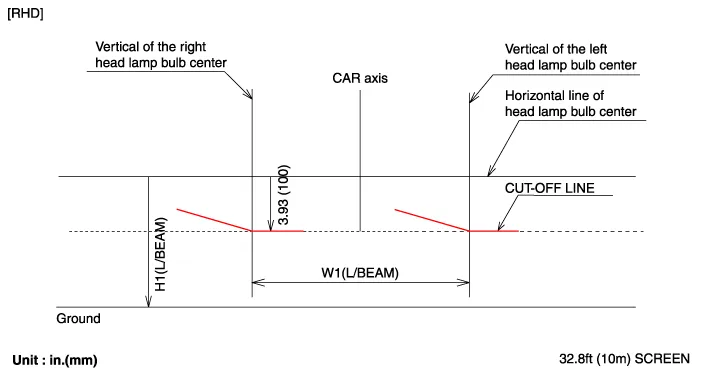 | 3. | . Draw vertical lines (Vertical lines passing through respective head lamp centers) and a horizontal line (Horizontal line passing through center of head lamps) on the screen. |