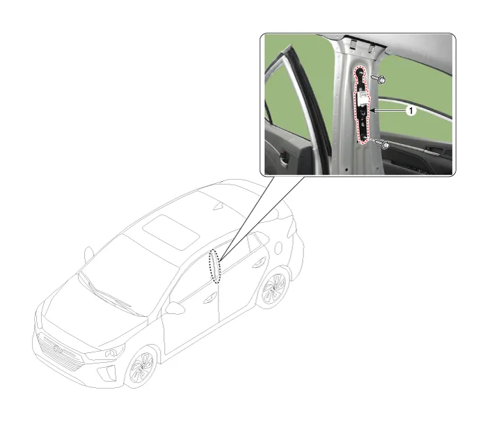 Replacement1.Remove the front seat belt upper anchor.(Refer to Front Seat Belt - "Front Seat Belt Pretensioner")2.After loosening the mounting bolts, remove the height adjust (A).