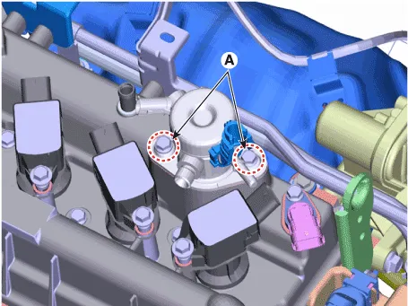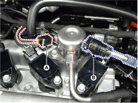 | 4. | Disconnect the fuel pressure control valve connector (A). |