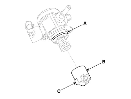 | 7. | Remove the installation bolts (E), and then remove the high pressure fuel pump from the cylinder head assembly.