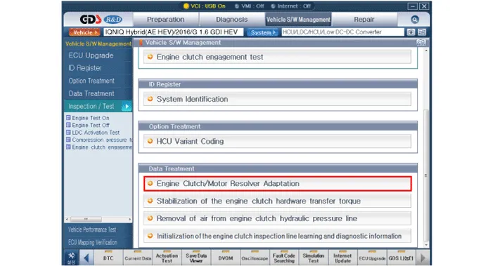 | 5. | Select "Engine clutch/motor resolver adaptation.".