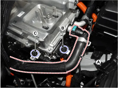 | 4. | Drain the coolant of hybrid motor cooling system. (Refer to Hybrid Motor Cooling System - "Coolant") |