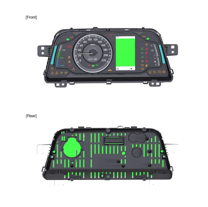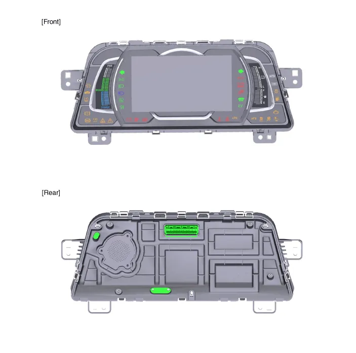 Troubleshooting Error Item Failure symptom Inspection items Detailed inspections Relevant Parts/ Components Screen displayTFT-LCD screen does not turn on1)Connector attachments2)Components1)Check the connector attachments2)Check B+, IGN and GND wiring3)Check the components Connectors, wiring, fuses, dashboardWarning lightAirbag warning lamp malfunction1)Connector attachments2)C-CAN3)Components1)Check airbag + signal (connectors)2)Check C-CAN (ACU4) signal3)Check the FPC attachment inside the dashboardACU Connectors, wiring, fuses, dashboardMode conversionIntegrated driving mode malfunction1)Connector attachments2)Switch3)Components1)Check the switch input (connector)2)Check the switch signal input(disconnection or shorting)3)Check conversion with dashboard componentSwitch connector, wiring dashboardIlluminationInterior light brightness cannot be controlled.
